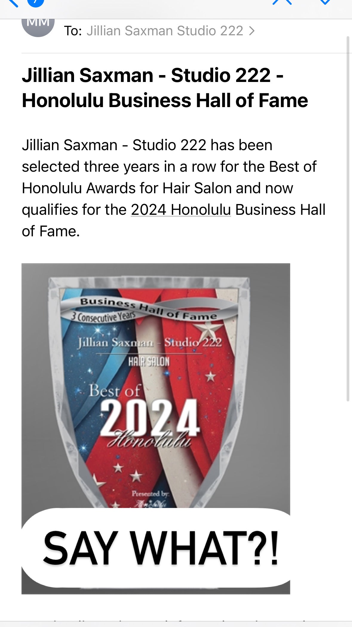 Only two years after opening, Jillian was awarded the Best of Honolulu for Hair Salons in 2022! There are over 500 salons in Honolulu and Studio 222 came out on top!
